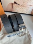 Louis Vuitton Pont Neuf 35mm black cross-grain leather belt, shiny gold-finished
