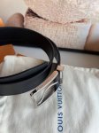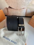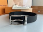 - Louis Vuitton Pont Neuf 35mm calfskin and black pebbled leather belt, with a