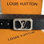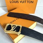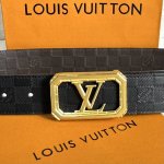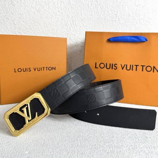 Louis Vuitton Stainless Steel Letter Buckle, 4.0cm Width, Men's Steel Buckle Belt, Italian Imported Top-Grade Cowhide, Natural and Exquisite Check Pattern, Brand New Genuine Leather Belt, Versatile, Casual, Stylish and Exquisite.