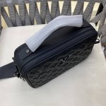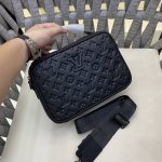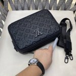 Louis Vuitton's printed embossed messenger bag, a classic travel accessory, is reimagined in a new colorway for the Louis Vuitton Love's March collection. Combining a soft texture with an all-over embossed brand logo, varying textures create a subtly lustrous finish. This classic messenger bag showcases the brand's signature materials in a modern and stylish hue. Lined with cotton and linen, it features a trademark leather plaque. Model: 5244-5