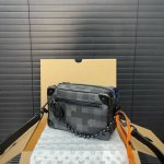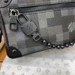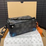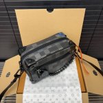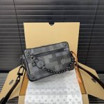 Lv Trunk Damoflage black canvas Pharrell design new chain box bag small square bag unisex crossbody bag small box real shot original fabric dust bag foldable gift box 18 x 12 cm