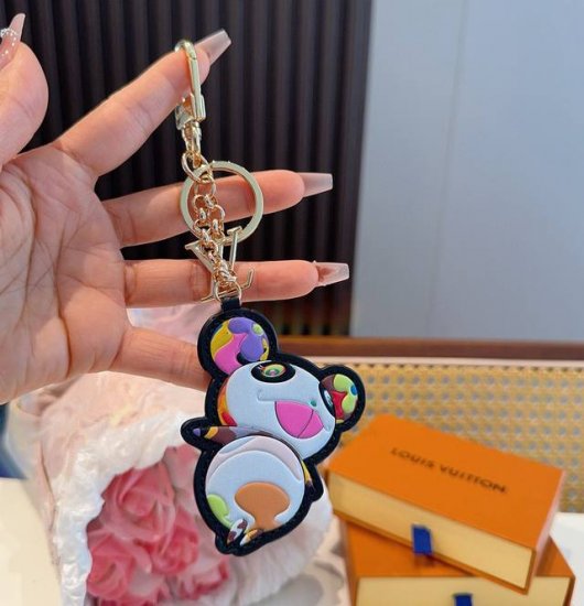 Lujia's new Louis Vuitton x Murakami Takashi collaboration, a panda pendant with a cartoon letter design, a LV keychain and bag charm, a unisex couple's model, a metal LV x Tm Superflat Panda keychain with a classic monogram-inspired color pattern.
