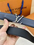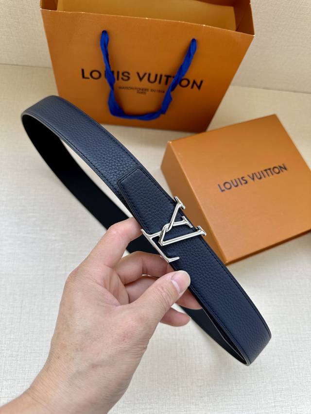 Lv Attract reversible belt features a slightly curved edge and a modern-shaped end, with a spiral structure integrated into the metal Lv buckle. Classic colors and different textures present two styles, achieving multiple styling possibilities.