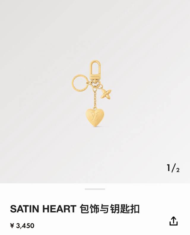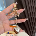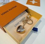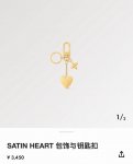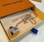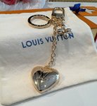 The Lv Heart bag charm is made of dazzling metal, with a heart-shaped inscription hanging on a delicate chain, which contrasts with the small pointed Monogram flower, adding a touch of luxury to the handbag.