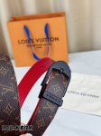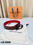 LV classic patterned leather belt, 3.0 width design, paired with a unique red wa