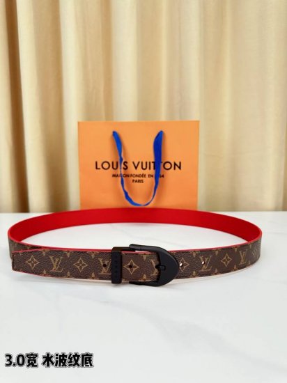 LV classic patterned leather belt, 3.0 width design, paired with a unique red wave pattern base, exuding understated luxury. Available with silver, gold, and black buckles to suit different occasions. Comes in exclusive brand packaging, perfect for gifting or personal use. A small belt that showcases exceptional taste, LV leather belts add the finishing touch to your style.