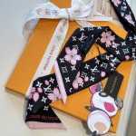 Lv Donkey Long Silk Scarf Twilly Headband Pointed Sakura Smiley Face