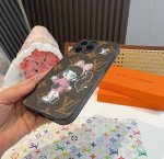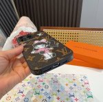 Lv fine hole full cover mobile phone case cartoon pattern Lv full surround edge leather mobile phone case
