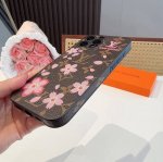 Lv fine hole full cover mobile phone case Murakami Takashi cherry blossom pattern Lv full surround edge leather mobile phone case
