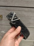 LV leather belt, featuring a new pure steel buckle and an embossed design on the
