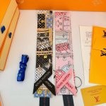 Lv Let's Go Bb Headband! The colorful hard case pattern is a metaphor for Louis Vuitton's box-making heritage, and the Monogram pattern pays tribute to the brand's classics. The complex images are all presented by inkjet printing. The French imported silk fabric has a very special touch and is very versatile: scarves, headbands, bag accessories, belts... and so on. It is very easy to control and can be matched with clothes in summer and bags in winter. The top silk has a super strong luster and is extremely exquisite. This one is really a must-have. 6*120Cm, 100% silk double-layer double-sided
