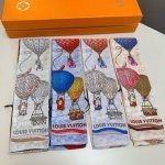 Lv Ribbon Upandaway The silk headband depicts the poetic scene of a hot air balloon carrying leather goods into the sky, looking back at Louis Vuitton's 2012 Travel Promise advertisement. Flip it over to reveal the classic Monogram pattern, playing an ode to the fun of travel. 8120 Top-grade silk