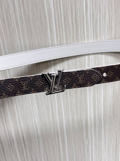 Lv The Mini Flowergram double-sided belt is made of stitched leather and Monogram canvas, with a pointed Monogram flower buckle set off the marquise belt end, injecting a feminine touch to the slender design. 2.0 Width
