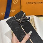 . This double-sided belt is made of Monogram coated canvas. The LV Flower embossed on the back leather highlights Pharrell Williams's new logo. The unique buckle incorporates eye-catching lettering, giving the brand elements a modern charm.