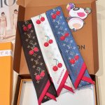 Long silk scarf Twilly headband with pointed cherry smiley face