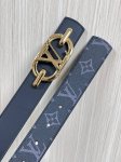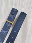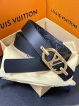 New for the season, this belt is crafted from luxurious calfskin and Monogram canvas, allowing for easy switching between two styles. The Louis Vuitton handwritten logo is transformed into a wide metal buckle, drawing attention to the center and adding an elegant touch to both casual and formal looks. 3.0 wide black calfskin with floral pattern.