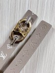 New for the season, this belt is crafted from luxurious calfskin and Monogram canvas, allowing for effortless switching between two styles. The Louis Vuitton handwritten logo is transformed into a wide metal buckle, drawing attention to the center and adding an elegant touch to both casual and formal looks. Made of 3.0mm wide nude double-sided pebbled calfskin.