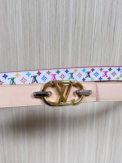 New for the season, this belt is crafted from luxurious calfskin and Monogram canvas, allowing for effortless switching between two styles. The Louis Vuitton handwritten logo is transformed into a wide metal buckle, drawing attention to the center and adding an elegant touch to both casual and formal looks. Made of 3.0mm wide white calfskin.