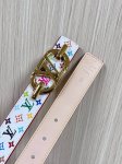 New for the season, this belt is crafted from luxurious calfskin and Monogram canvas, allowing for effortless switching between two styles. The Louis Vuitton handwritten logo is transformed into a wide metal buckle, drawing attention to the center and adding an elegant touch to both casual and formal looks. Made of 3.0mm wide white calfskin.