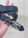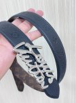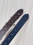 New for the season, this belt is crafted from luxurious calfskin and Monogram canvas, allowing for easy switching between two styles. The Louis Vuitton handwritten logo is transformed into a wide metal buckle, drawing attention to the center and adding an elegant touch to both casual and formal looks. The 3.0 wide wire buckle is made of embossed black pebbled calfskin, with a pointed and square design.