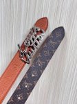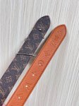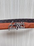 New for the season, this belt is crafted from luxurious calfskin and Monogram canvas, allowing for easy switching between two styles. The Louis Vuitton handwritten logo is transformed into a wide metal buckle, drawing attention to the center and adding an elegant touch to both casual and formal looks. The 3.0 wide wire buckle is made of tan pebbled calfskin with an embossed pattern, featuring a pointed and square design.