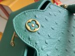 Premium-grade, fully packaged, premium original leather M21164, emerald with ostrich shell clasp. This Capucines mini handbag is crafted from Taurillon leather, featuring an ostrich leather-wrapped flap, handles, and Lv logo. The flap can be opened or closed to display the Lv logo. The detachable wide leather shoulder strap adds a modern touch. Dyed with vibrant colors, the Lv logo is inlaid with lustrous shells. The leather handles allow for elegant hand carry, while the detachable wide shoulder strap allows for shoulder and crossbody carry. Detailed Features: 21 x 14 x 8 cm (Length x Height x Width).