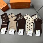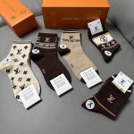 Special Louis Vuitton women's new mid-calf socks, five pairs per box, made of pure cotton, soft, comfortable and breathable, with jacquard classic logo, super nice style, big brand out, a must-have for fashionistas, super easy to match