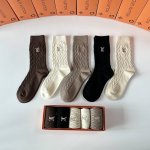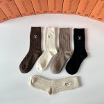 Louis Vuitton New Cashmere Embroidered Mid-Length Slouch Socks! Five pairs per box, same style as in boutiques, a must-have for trendsetters, super easy to match.