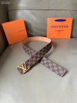 This double-sided belt, also available at Louis Vuitton stores, features Damier Ebene canvas and soft calfskin leather on both sides, reinterpreting Louis Vuitton's classic design from a modern perspective. The Lv letter buckle adds a signature touch.