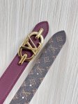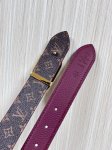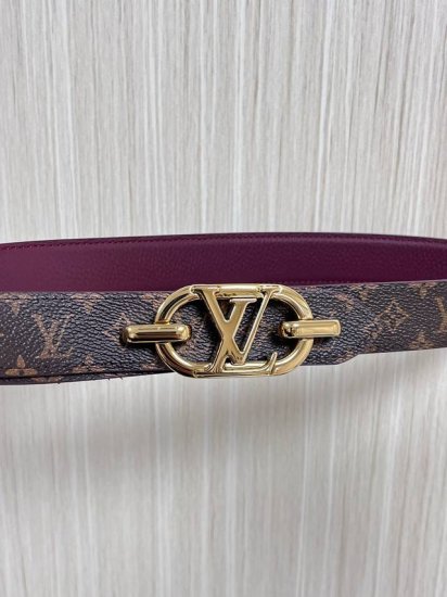 This season's newest design features a belt crafted from luxurious calfskin and Monogram canvas, allowing for effortless switching between two styles. The Louis Vuitton handwritten logo is transformed into a wide metal buckle, drawing attention to the center and adding an elegant touch to both casual and formal looks. It features a 3.0mm wide burgundy pebbled leather strap.
