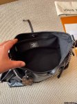Soft lambskin leather creates a stylish, slightly wrinkled effect, creating a deep background with polished hardware and a relaxed silhouette, making it an ideal choice for day or night. The detachable shoulder strap and chain allow for versatile styling possibilities.