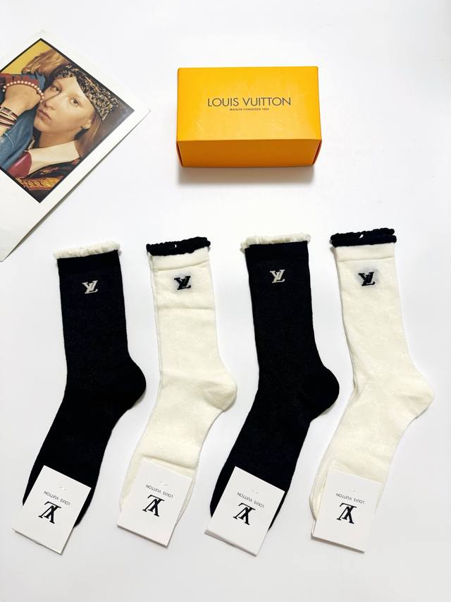 Lv Louis Vuitton classic letter logo ultra-thin breathable mid-tube socks, Ins super popular air-conditioning socks, a must-have for fashionistas, classic color matching personality fashion all-match style, you deserve it