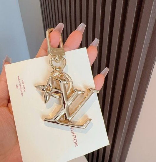 Lv Keychain Enamel Craft Lv Letter Pendant Pop Flower Bag and keychain charm is perfect for adding a signature touch to leather accessories. It features a gold-tone metal clasp embellished with a vibrant Lv initials and monogram flower pendant, a charm, monogram, and initials. Lv