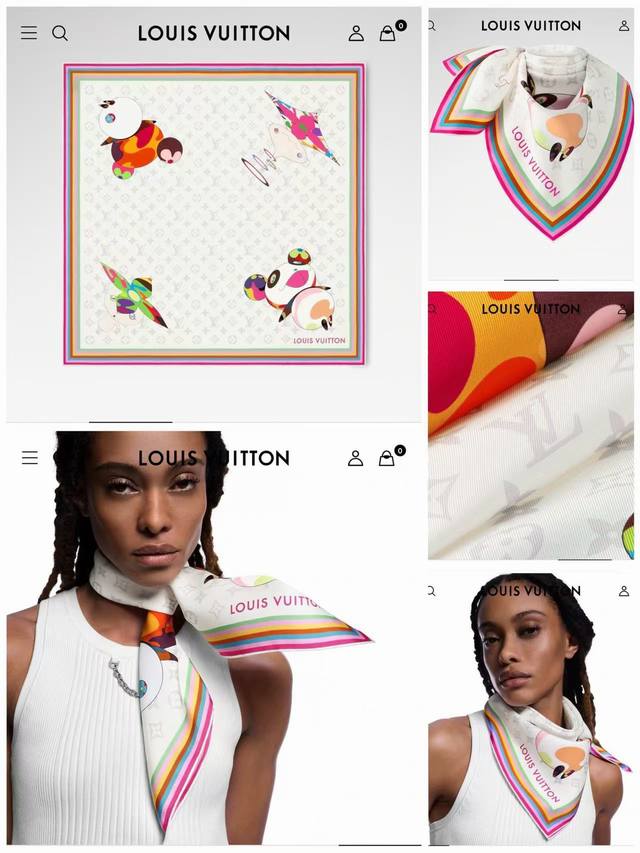 Lv official website synchronized 18Mm double-sided same color top silk "L family" 90 collection square scarf pays tribute to the original design through chic classic colors. The work has not been reinterpreted or redesigned. [Lips] presents the original design created by the artist in a simple and faithful way. This product can be worn in a variety of ways and is suitable for any outfit. Whether it is tied around the neck or worn as a top belt or headscarf, it is pleasing to the eye. It is simply beautiful. Size: 90X90, Material: 100% top silk, 2 colors