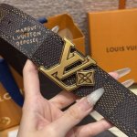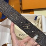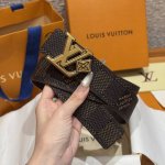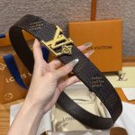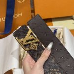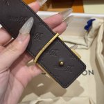 - Lvjia's new double-sided belt. This double-sided belt is crafted from Monogram coated canvas. The brand's "Flower" embossing on the back leather highlights Pharrell Williams's new logo. The unique buckle incorporates eye-catching lettering and delicate florals, giving the brand's elements a modern appeal. Width: 40mm.