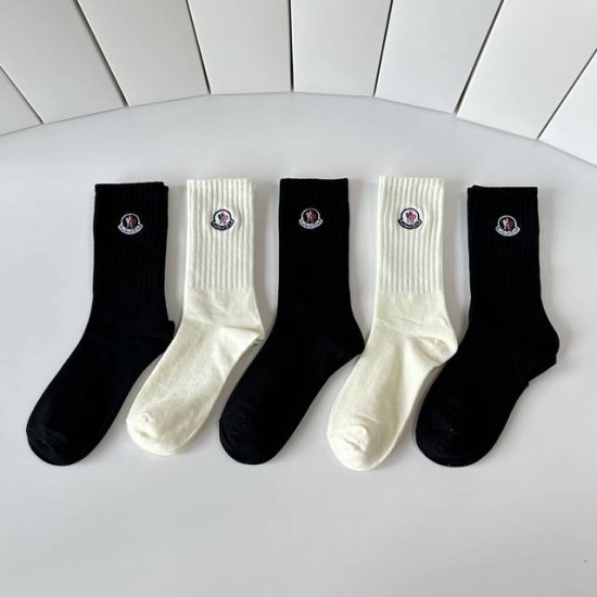 Special packaging for Moncler's latest mid-calf embroidered slouch socks! Five pairs per box, same style as in department stores, a must-have for trendsetters, super easy to match.