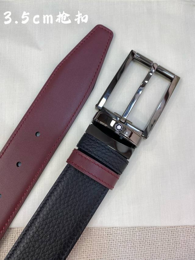 / Montblanc 3.5cm wide, made of top-grain cowhide, pin buckle, free-cut business c