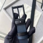 - Montblanc Square Buckle Black Blue Belt 35mm