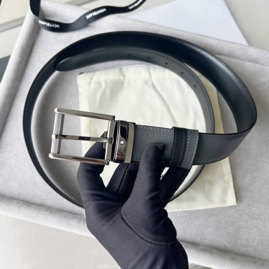 - Montblanc Square Buckle Black Blue Belt 35mm