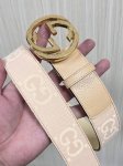 4.0 This belt, in a wide, elegant color palette, cleverly blends Renaissance aesthetics with a fresh take on 80s menswear. It features double G details, interwoven lettering hardware, and mint yellow Super Double G canvas fabric for added allure. (Continued from DDD)