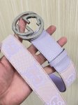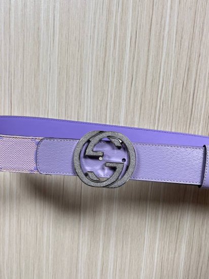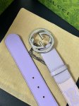 4.0 Wide New Style: A subtle blend of elegant colors and Renaissance aesthetics, this belt offers a fresh interpretation of contemporary men's style. Features double G details, interwoven lettering hardware, and a light purple Super Double G canvas fabric for added allure. DDD