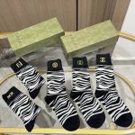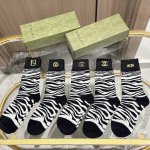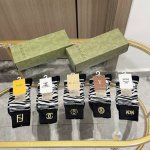/ A box of five high-quality European and American brand socks with packaging