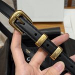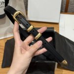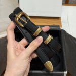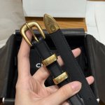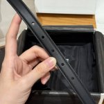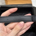 This belt is made of cow leather. The bottom is made of cow split leather, round buckle, 2 metal buckles and 1 metal tip decoration, the bottom of the first ring is engraved with the brand logo.
