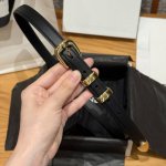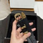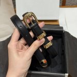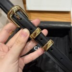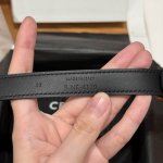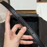 This belt is made of cow leather. The bottom is made of cow split leather, round buckle, 2 metal buckles and 1 metal tip decoration, the bottom of the first ring is engraved with the brand logo.