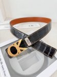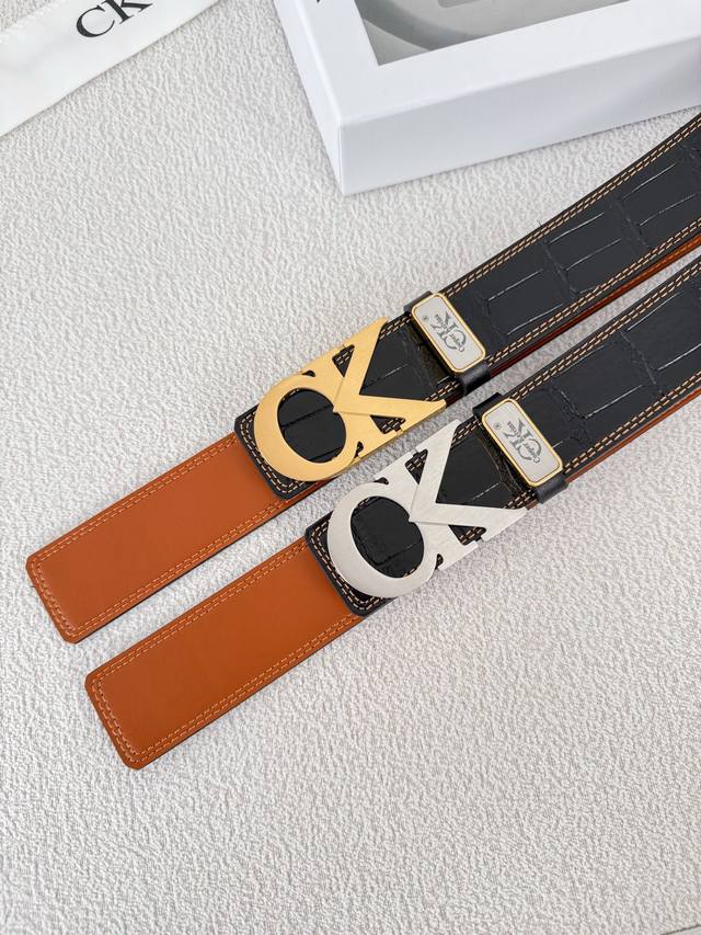 Belt: CK trendy brand. Genuine counter product. Cooperkelvina original brand quality 100% imported original first-layer cowhide, worn inside the tail. Hidden buckle style, guaranteed genuine leather - CK letter Logo automatic buckle design process. Vacuum electroplating. Never fade. 24K pure steel buckle crocodile leather texture black, blue, brown and gray. Double-sided dual-use genuine counter product. Complete trademark certificates. Luxury niche brand. High-end gift for others. The first choice for personal use. Dewu has passed inspection