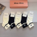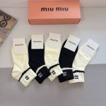 Box of 5 pairs (with packaging) DDD Miumiu new embroidered pure cotton socks, classic letter logo boat socks, stylish and versatile! Super soft material, comfortable and breathable, fashionable and versatile DDD