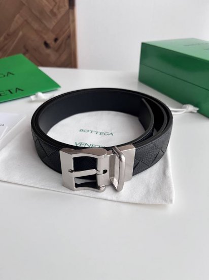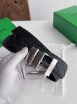 -Bv 2025 latest double-sided men's braided belt, handmade Intreccio large grid woven Italian lychee calfskin with a rotatable buckle design, slightly retro silver pin buckle, width 35mm, color: black