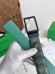 Bv 2025 New Men's Woven Belt, Double-sided, Handmade Intreccio Large Grid Woven Double-sided Italian Calfskin with Vacuum Gunmetal Color Rotatable Square Buckle, Front Marking, Width 35mm, Colors: Dark Green Mermaid Green
