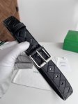 Bv 2026 Newest Men's Braided Belt, Handmade Intreccio Large Grid Braided Italian Lychee Grain Calfskin with Original Lychee Grain Cowhide Flat Hole Design with Slightly Retro Silver Grid Roller Buckle, Adjustable Leather Band Width 35mm. Color: Black Two-Tone DDD