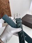 Bv New Men's Belt Handmade Large Grid Intrecciato Piccolo Woven Italian Calfskin with Slightly Retro Silver Square Octagonal Pin Buckle Belt Width 3.5Cm Color: Pine Cypress Green Pine Cypress Green